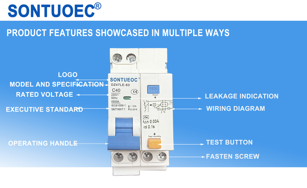 SONTUOEC ವಿವಿಧ ಸಣ್ಣ ವಿದ್ಯುತ್ ಉತ್ಪಾದನೆಯಲ್ಲಿ ಪರಿಣತಿ ಹೊಂದಿರುವ ಚೀನೀ ಪೂರೈಕೆದಾರರು/ತಯಾರಕರಲ್ಲಿ ಒಬ್ಬರು APPLIANCES.DZ47LE ಒಂದು ಪೋಲ್ ಎರಡು ವೈರ್, 2 ಪೋಲ್ ಅಥವಾ 400V 3 ಪೋಲ್, 3 ಪೋಲ್ 4 ವೈರ್ಗೆ AC 50/60Hz ರೇಟ್ ವೊಲ್ಟೇಜ್ 230V ಸಾಲಿಗೆ ಅನ್ವಯಿಸುತ್ತದೆ. 4 ಪೋಲ್ ಮತ್ತು ಪ್ರಸ್ತುತ 63A ವರೆಗೆ ರೇಟ್ ಮಾಡಲಾಗಿದೆ. ಇದು ಲೈನ್ ಮತ್ತು ಮೋಟರ್ ಅನ್ನು ಓವರ್ಲೋಡ್ ಮತ್ತು ಶಾರ್ಟ್ ಸರ್ಕ್ಯೂಟ್ನಿಂದ ರಕ್ಷಿಸುತ್ತದೆ