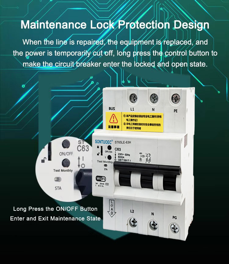 ವಿವಿಧ ಸಣ್ಣ ವಿದ್ಯುತ್ ಉಪಕರಣಗಳ ವೈಫಿ 4 ಜಿ ತುಯಾ ಎಸ್ಟಿ 65ಲೆ -63 ಹೆಚ್ ಸರಣಿ ಮಲ್ಟಿ ಕ್ರಿಯಾತ್ಮಕ ಆರ್ಸಿಬಿಒ ಇಂಟೆಲಿಜೆಂಟ್ ಸರ್ಕ್ಯೂಟ್ ಬ್ರೇಕರ್ ಸಹ ಸೊಂಟೂಯೊಕ್ ಉತ್ಪಾದಿಸುವ ಉತ್ಪನ್ನವಾಗಿದೆ ಇತರ ಸ್ಥಳಗಳು.